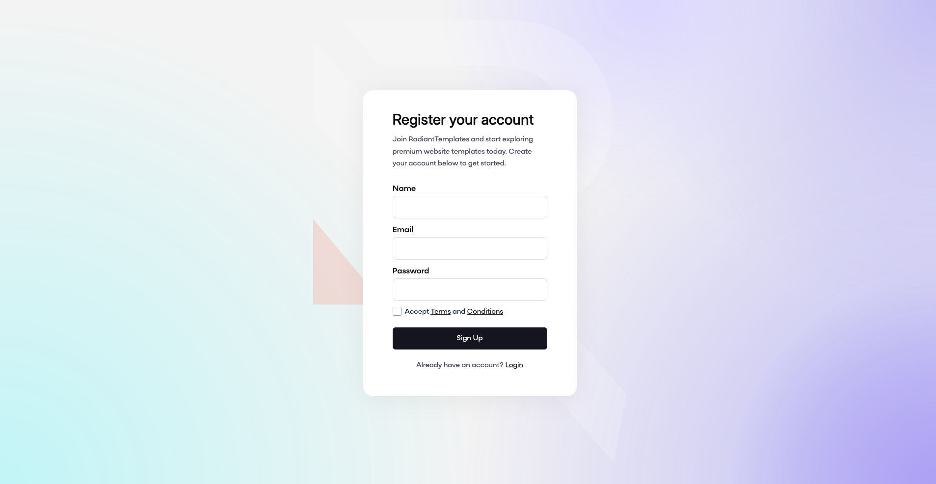 Log in to your RadiantTemplates account and navigate to the template you want to use.