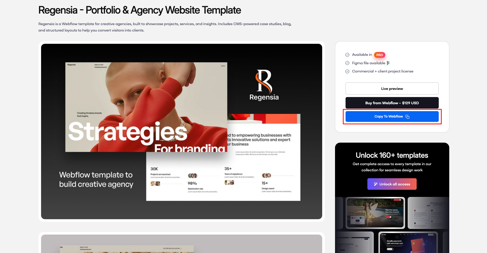 You will be automatically redirected to Webflow, where the template will be added to your account.